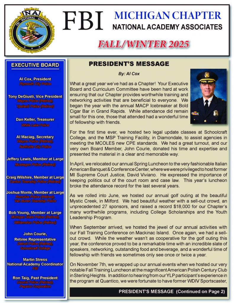 FBINAA MICHIGAN CHAPTER FALL/WINTER 2025 NEWSLETTER