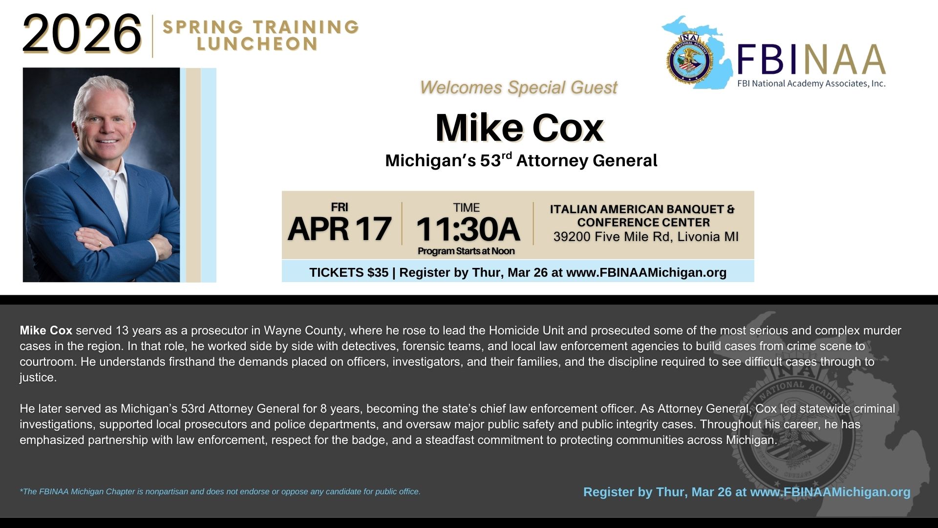 FBINAA MICHIGAN CHAPTER 2026 SPRING TRAINING LUNCHEON