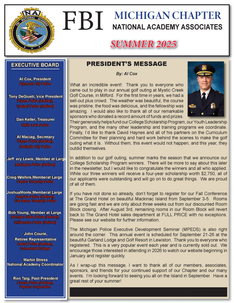 FBINAA MICHIGAN CHAPTER NEWSLETTER- SUMMER 2025