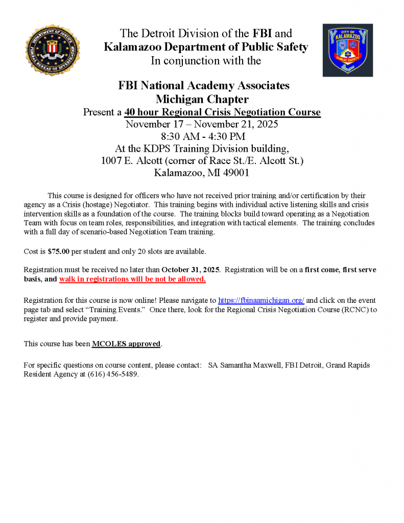 FBINAA MICHIGAN CHAPTER FALL 2025 TRAINING LUNCHEON
